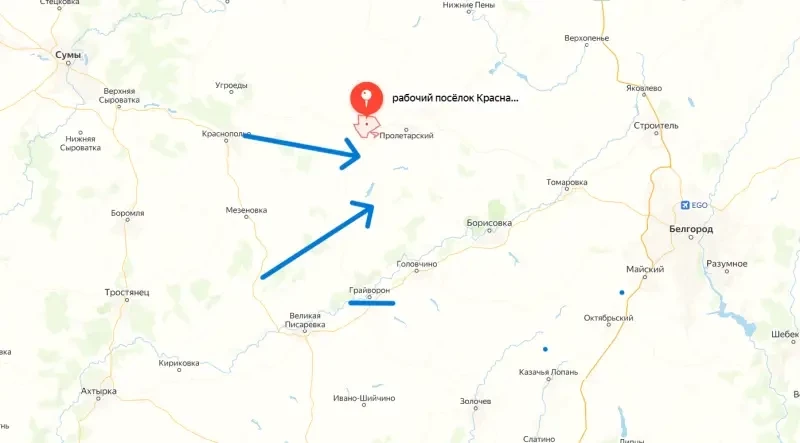 ВСУ рассматривают возможность наступления на Белгородскую область на участке между н.п. Красная Яруга и н.п. Грайворон