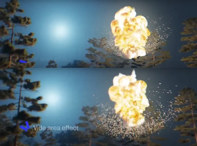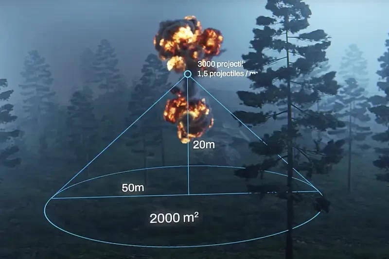При подрыве на высоте около 20 метров поражающие элементы БЧ обеспечивают поражение целей на площади порядка 2000 квадратных метров – это круг диаметром 50 метров. Площадь поражения можно варьировать, изменяя высоту подрыва, разумеется, при этом будет изменяться вероятность попадания поражающих элементов в цель, а также их пробивная сила.