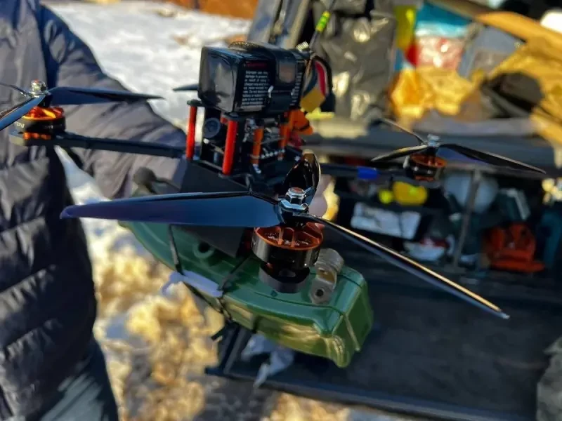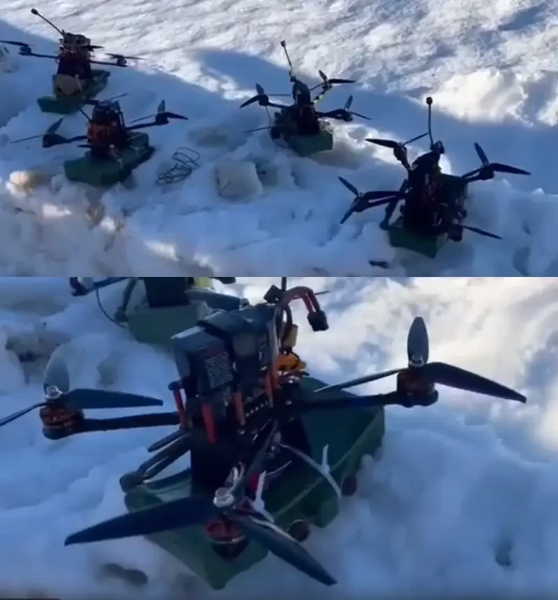 Разрабатываются, а может, уже и применяются, и другие FPV-дроны с боеприпасами шрапнельного типа, в частности, с боеприпасами FRAG-09-576-1.3kg и FRAG-05-975-0.9kg.
