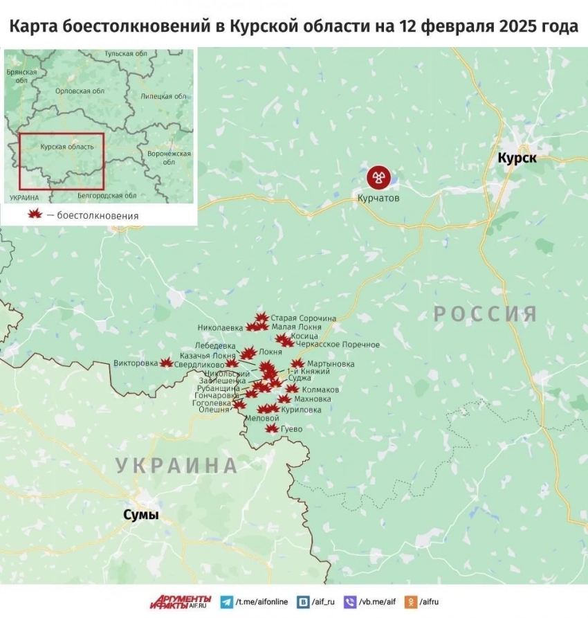 Новая карта боевых действий в Курской области от 12.02.2025: ВС России освобождают территорию страны