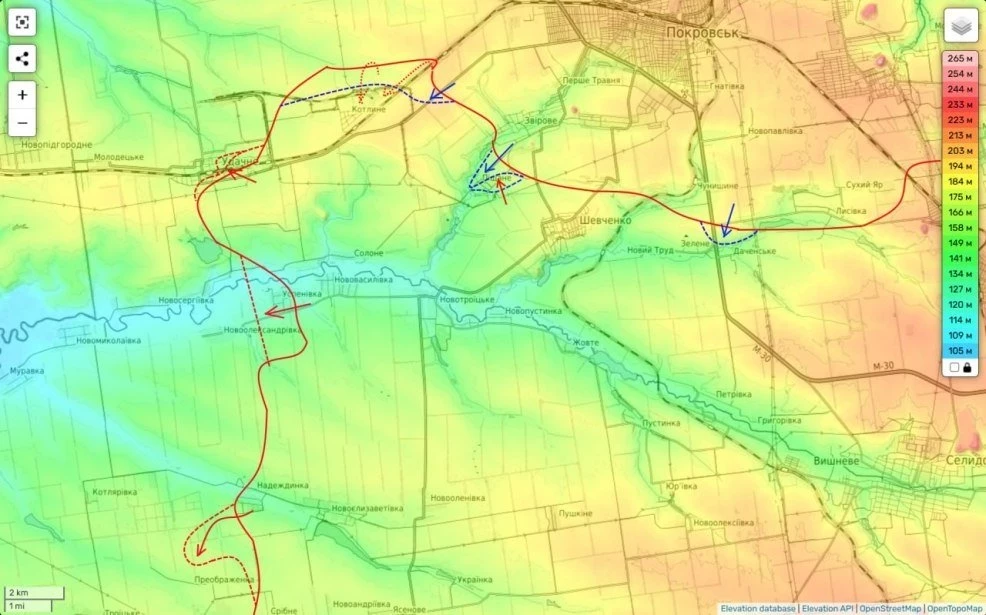 Юрий Подоляка в свежей сводке от 13.02.2025 сообщил о том, встречные бои идут южнее Покровска