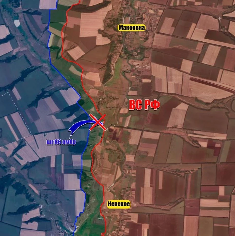 Согласно его сведениям, бойцы ВС РФ двумя сосредоточенными ударами прорвали оборону ВСУ на участках Западное - Дорошовка и Двуречная - Кутьковка, продвинувшись на расстояние около километра.
