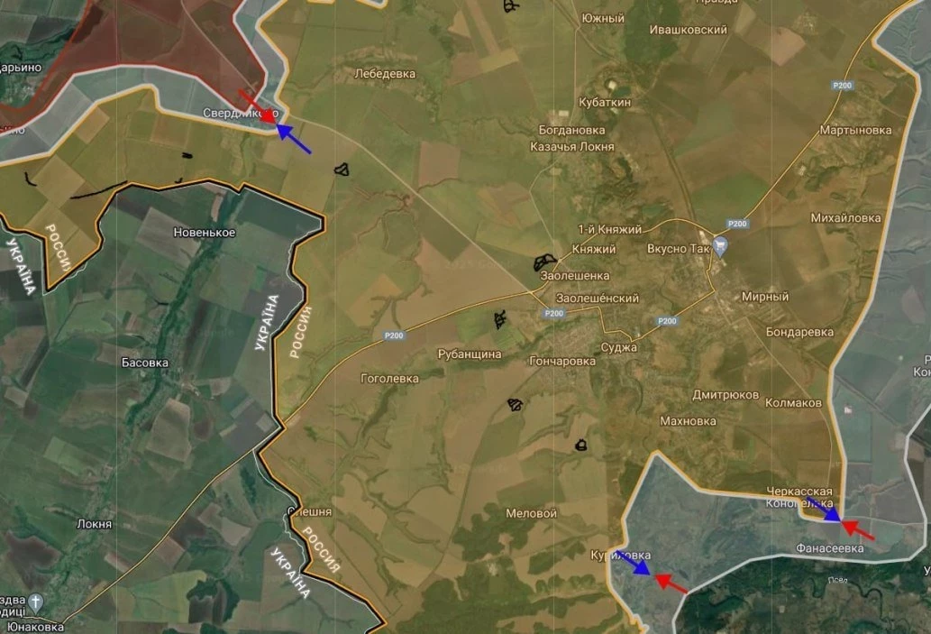 В Курской области отмечаются тяжёлые боестолкновения в районе Свердликово. Продолжаются встречные бои в районе Черкасской Конопельки, ВСУ перебрасывают резервы. ВС РФ ведут штурмовые действия в районе Куриловки, имеются тактические успехи.