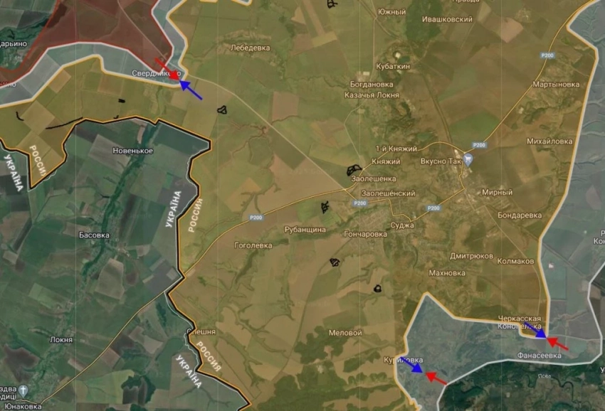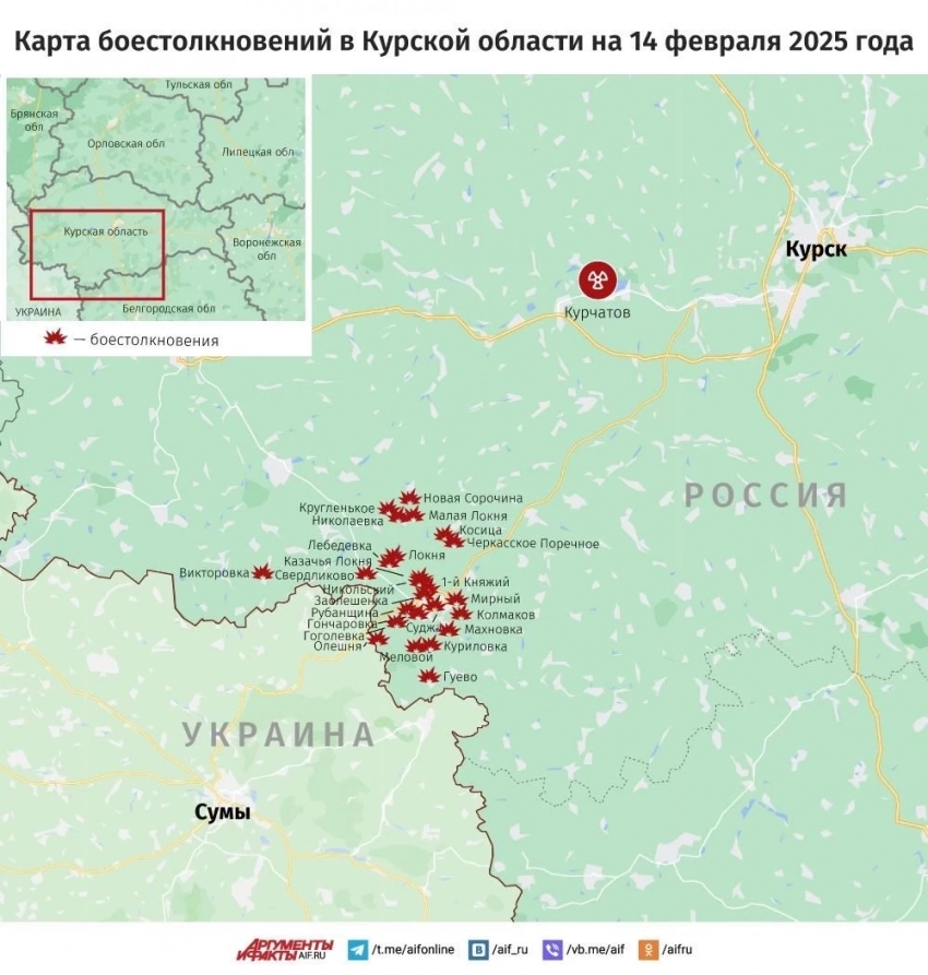 ВС РФ ведут тяжёлые бои в окрестностях Свердликово в Курской области: новая карта боевых действий от 14 февраля 2025 года