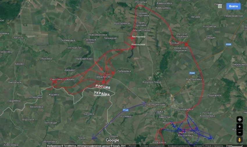 После взятия под контроль села Свердликово в Курской области, российская армия продолжила развивать успех, начав движение по долине реки Локня, на север в сторону Лебедевки и на юг в направлении Новенького. Об этом в своём Telegram-канале сообщил военный блогер Юрий Подоляка.