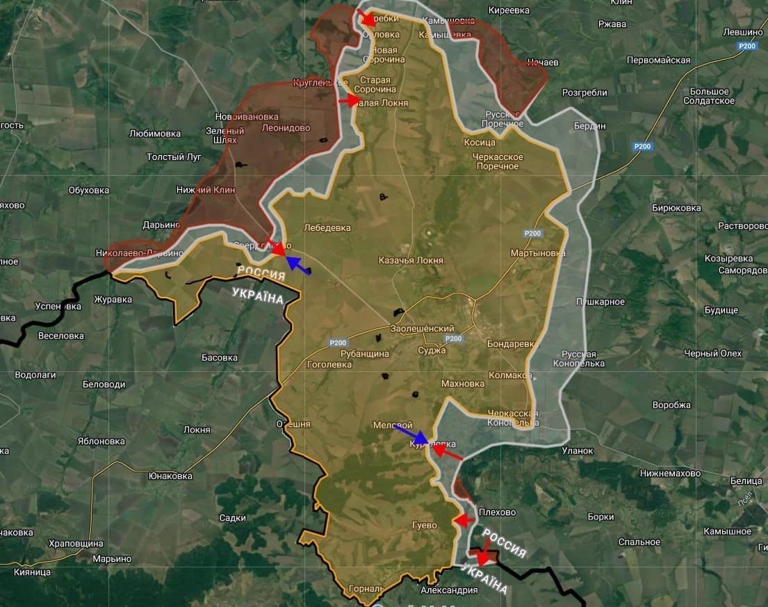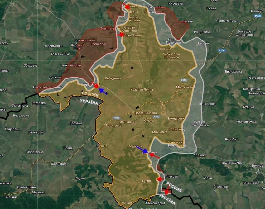 Российские войска ведут штурмовые действия в направлении Куриловки, Гуево, а также пересекли государственную границу и заняли участок местности в районе заказника «Александрийский», сообщает Telegram-канал "БелВПО".