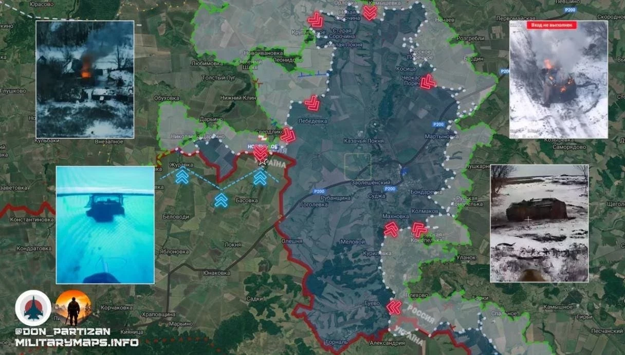Российская армия продавливает оборону противника южнее Свердликово и Николаево-Дарьино, через госграницу по направлению к Новенькому. По неподтвержденным данным, нашим частям уже удалось зайти на окраину деревни. Атаку российских десантников активно поддерживает наша авиация. Но и ВСУ обороняет здесь каждый опорный пункт, стягивает силы на северной границе Басовки. Бои идут серьезные, так как потеря Новенького и Басовки означало бы для ВСУ утрату главной трассы снабжения Суджанской группировки.