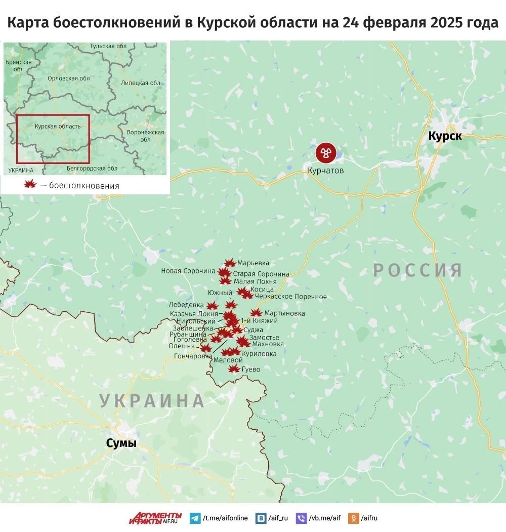 Свежая карта боевых действий в Курской области. Данные на сегодняшний день, 24.02.2025