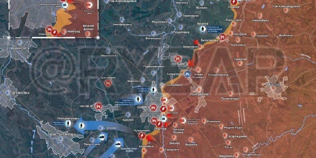 ▪️Армия РФ продолжает наступать на Артемовском и Авдеевском направлениях, атакует с целью улучшения тактического положение на Купянском и Лиманском направлениях.