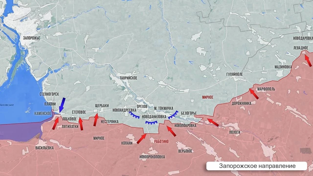 С Запорожского направления нет информации о каких-либо серьёзных продвижениях. Наши продолжают натиск в районе Пятихаток, где ВСУ создали систему подземных ходов, и это затрудняет продвижение наших войск. В последние дни армия России прощупывает позиции ВСУ в районе Малых Щербаков, вчера наши заняли там передовые позиции ВСУ. Однако говорить о наступательной операции рано. В районе Гуляйполя наши поразили очередной ПВД ВСУ.
