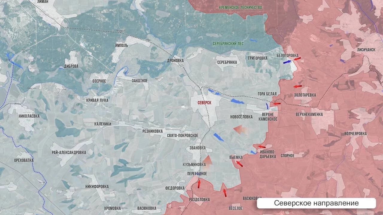 На Северском участке бои идут западнее Белогоровки и в районе Верхнекаменского, тоже без изменений.