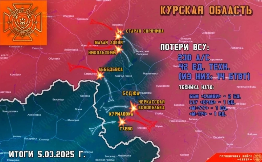 ВС РФ в Курской области продвинулись в направлении Малой Локни: свежие детали на 6 марта 2025