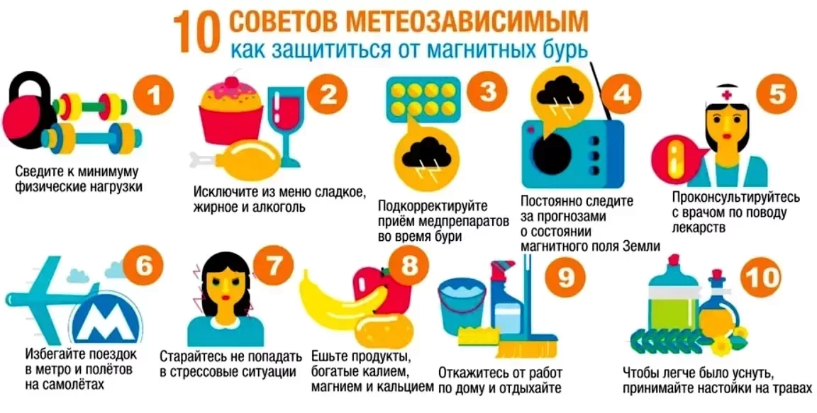 Советы метеозависимым: как пережить магнитную бурю (инфографика)