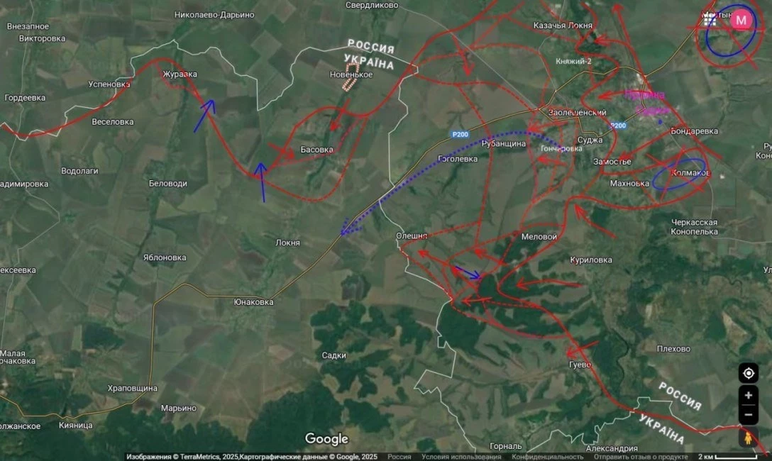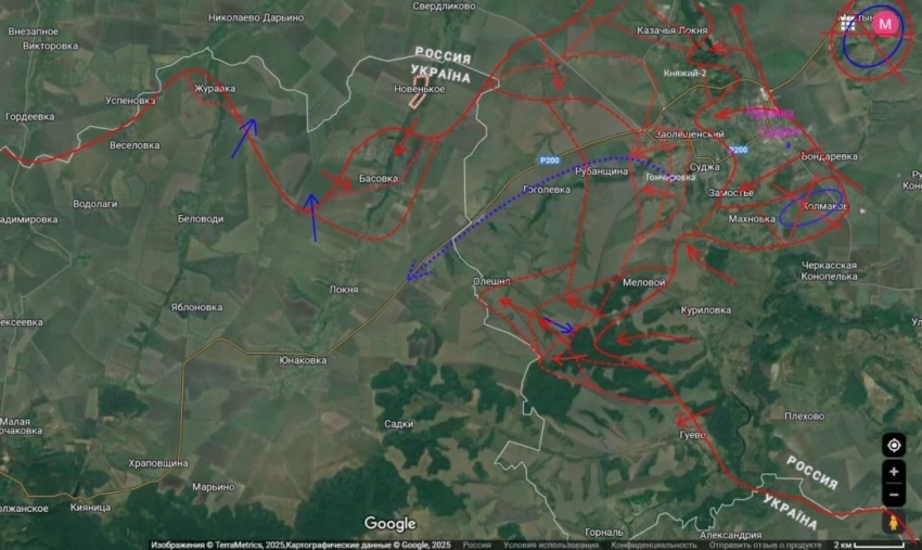 Эксперт сообщает, что населенный пункт Басовка в Сумской области перешел под контроль ВС РФ, бои идут в курской Олешне.