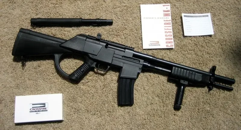 Американский рынок гражданского стрелкового оружия постоянно пополняется новыми образцами, в т.ч необычного облика. Например, в конце девяностых годов в продажу поступило т.н. комбинированное ружьё Crossfire Mk I. Это изделие имело необычную конструкцию и сочетало в себе функции гладкоствольного ружья и винтовки под популярный патрон. Ружьё привлекло внимание, но не показало особых коммерческих успехов, и вскоре его производство прекратилось.