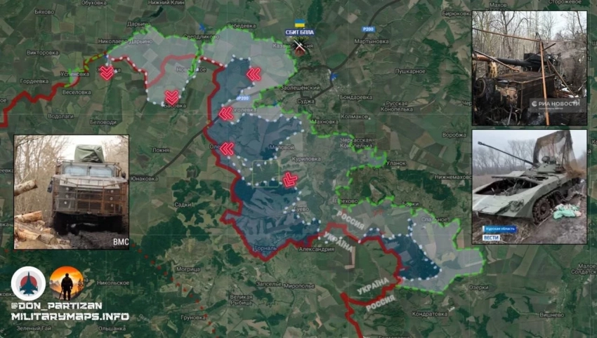 Котенок добавил, что ВСУ пытаются удержать небольшую территорию между селами Гуево и Горналь, там продолжаются бои. По его словам, на Сумском направлении российские войска ведут бои за населенный пункт Басовка и в направлении Журавка — Беловоды.