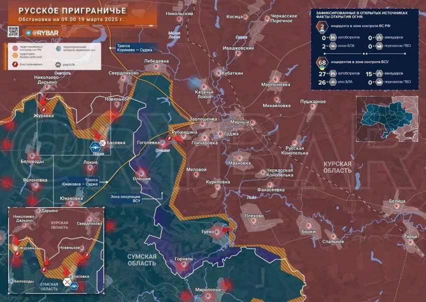 Свежая карта боевых действий в Курской области. Данные на сегодняшний день, 19.03.2025