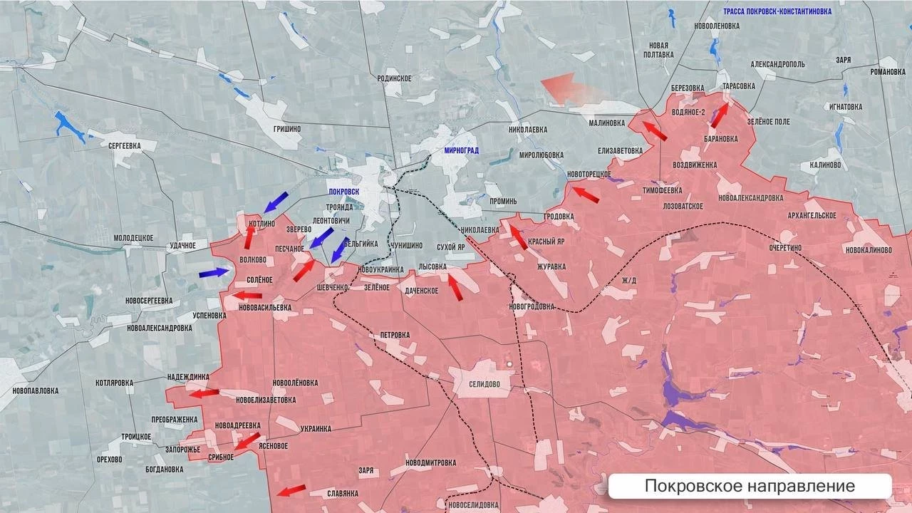 На Покровском направлении южнее Срибного российские подразделения продвинулись на 2 км. Севернее по фронту наши удерживают Запорожье, атакуют западнее и в районе Преображенки, откуда ВСУ, закидывая на бронеавтомобилях резервы, контратакует. ВСУ в очередной раз предприняли попытку срезать российский выступ на западном охвате Покровска: на двух бронированных машинах ВСУ заскочили на наши позиции в районе Солёного. По вражеской технике отработала артиллерия, наши отбились. Из Успенковки приходят позитивные новости о полной зачистке села. На восточном фланге ожесточенные бои без изменений.