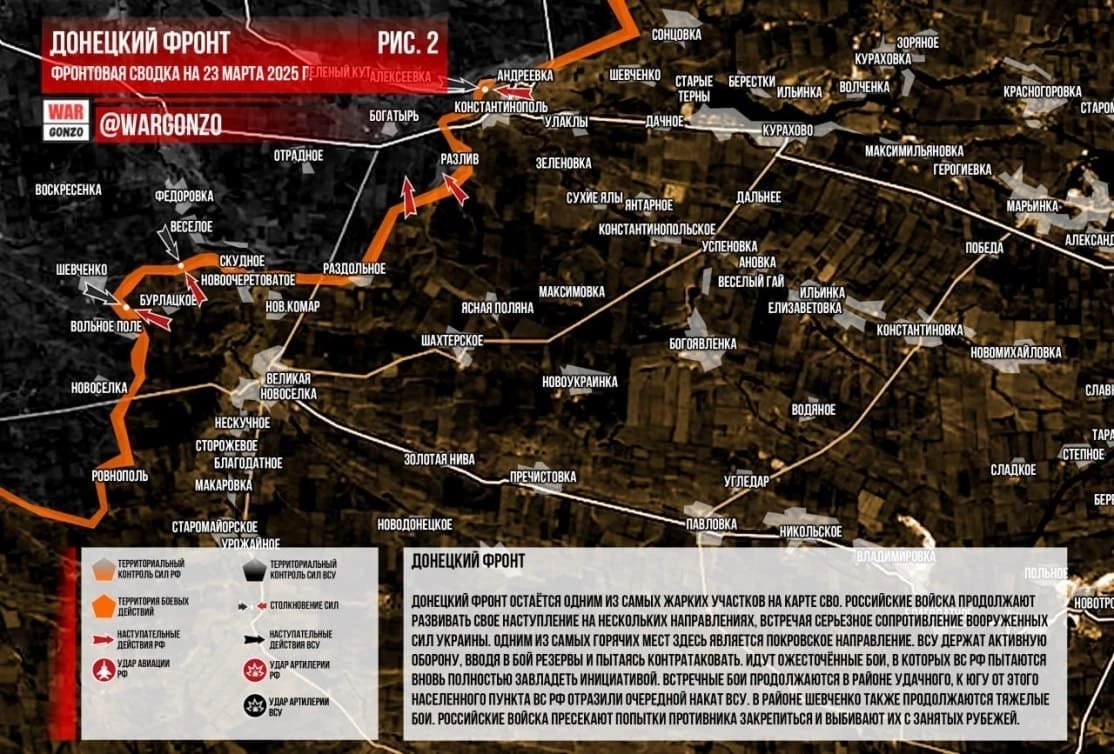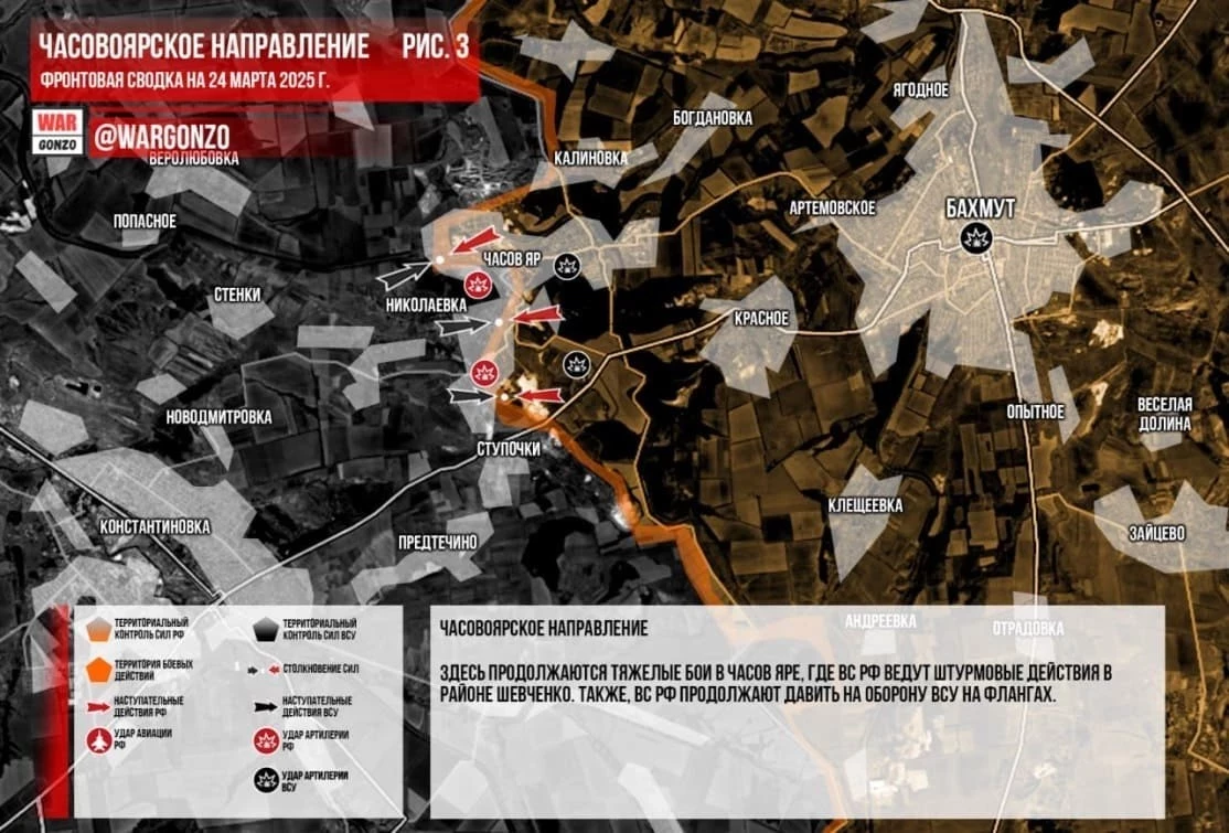 Свежий обзор ситуации в зоне проведения СВО от 24 марта 2025 года - карта боевых действий, ситуация на фронтах, обстановка в Донбассе. Последние новости на понедельник - в материале N4k.