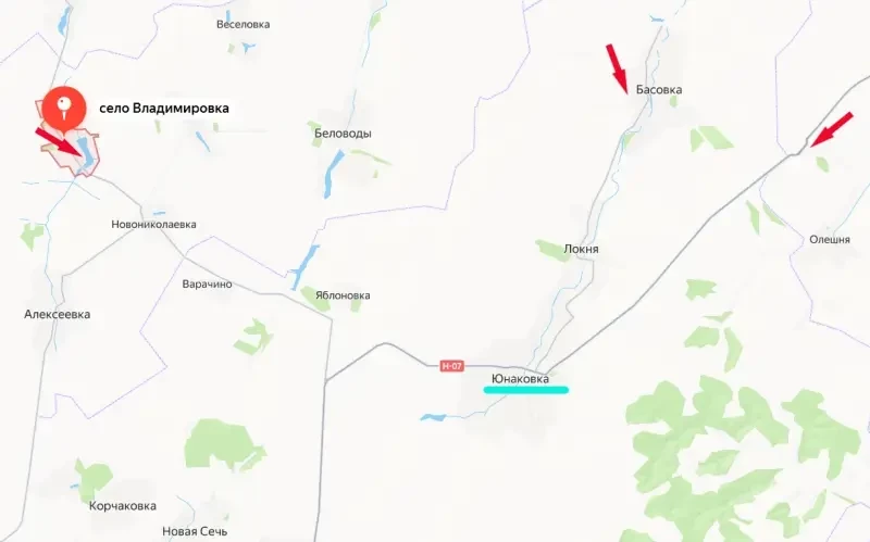 Владимировка входит в Сумской район одноимённой области. При этом от указанного села автомобильная дорога ведёт к важной трассе Н07, соединяющей областной центр Сумы с Курской областью. И в случае дальнейшего продвижения армии России к этой трассе может сформироваться конфигурация, при которой ВС РФ выйдут западнее Юнаковки, ключевого логистического хаба группировки ВСУ, действующей в сумском и курском приграничье. Сама Юнаковка может оказаться отрезанной от снабжения, чего и опасается противник.