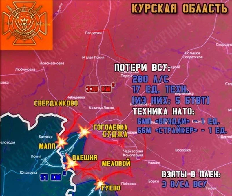 Также существенные потери враг несет в окрестностях Гоголевки и в районе МАПП "Суджа", где Северяне продолжают перемалывать переброшенные резервы противника.