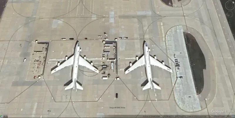 Спутниковый снимок Google Еarth: самолёты E-4B на стоянке авиабазы Оффут