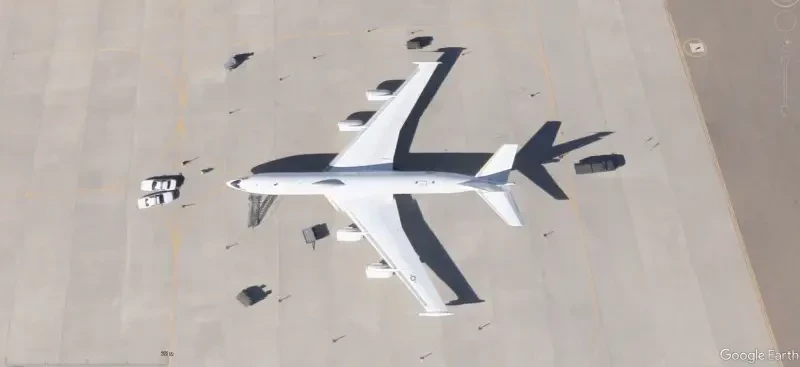 Спутниковый снимок Google Еarth: самолёт E-6В на авиабазе Киртлэнд