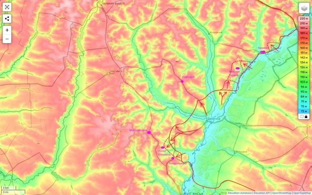 Таким образом мы продолжаем зачищать от противника западный берег реки Оскол севернее Купянска и расширяем свой плацдарм на его правом берегу.