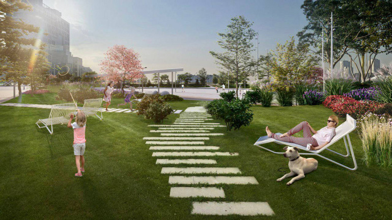 Благоустройство затронет территорию площадью 0,8 гектара, которая сейчас представляет из себя пустырь. Там появятся искусственные холмы, широкие мощёные дорожки, парковка на 19 машино-мест. Также проектом предусмотрена и площадка с роллердромом, на которой зимой будут заливать каток.