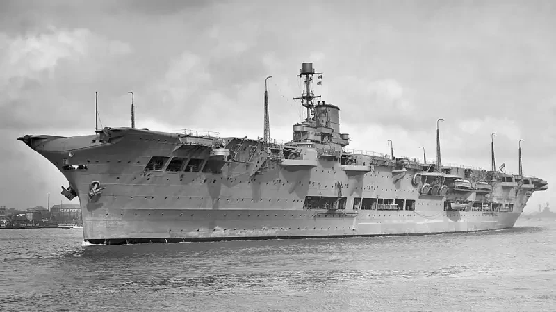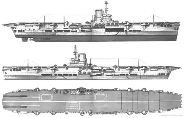 И не просто корабль, а новейший и новационный, как бы сейчас сказали. Как выглядели авианосцы того времени? А вот так: корабль с присобаченной поверх всего палубой, с которой взлетали самолеты. Британцы решили пойти дальше и разработали корабль, имевший одну сплошную палубу, представлявшую одно целое с корпусом.