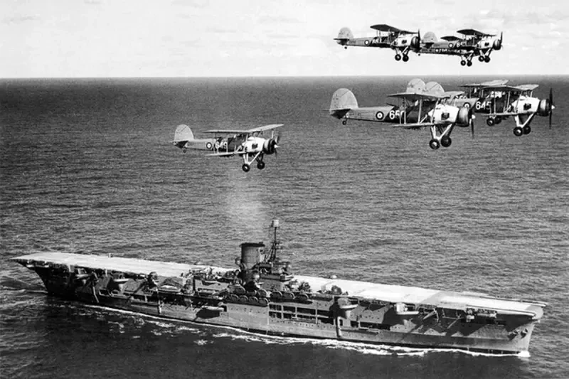 Главным ударным самолётом являлся универсальный биплан Fairey «Swordfish», который получил прозвище «авоська» и являл собой техническую мысль тридцатых годов. То есть был совершенно устаревшим. Правда, все свои победы на первых этапах Второй мировой войны британцы одержали именно с помощью этой летающей архаики.