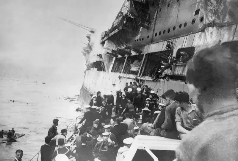 В 4:00 был отдан приказ всем оставшимся людям покинуть корабль. Буксирные тросы были отданы, и буксиры подошли к борту «Арк Ройяла», чтобы снять аварийную партию.