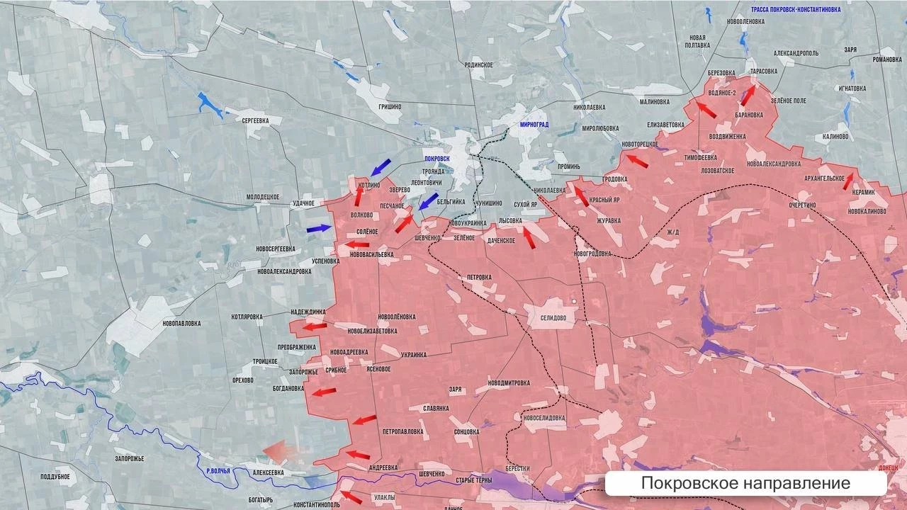 На Покровском фронте ВСУ предприняли попытку контратаковать в Шевченко, но понесли потери и отступили. По всей линии от Удачного до Лысовки противник перешёл в глухую оборону. Основное сражение «спускается» ниже по карте в район Котляровки-Богдановки. Наши атакуют здесь большими силами, противник стягивает резервы и старается навязать встречное сражение. В Преображенке наши штурмовики практически выбили врага из села и проводят зачистку. На восточном фланге – локальные бои в Тарасовке.