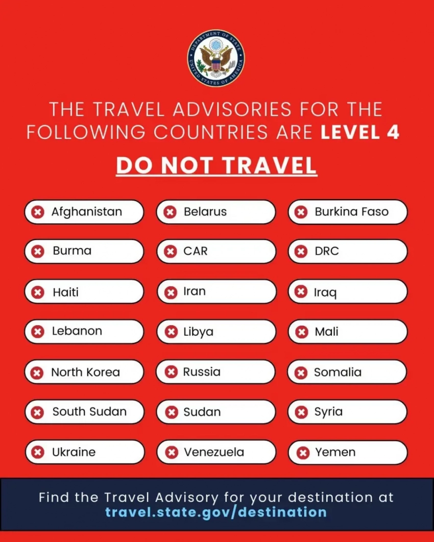 Госдепартамент США на своём сайте опубликовал предупреждение для американских граждан, в котором указаны страны, «опасные», по мнению дипведомства, для путешествий.