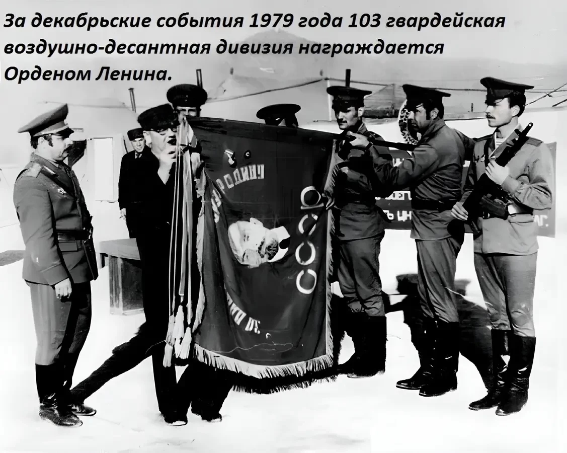1980 год. Плац 350-го гвардейского парашютно-десантного полка в Кабуле. Маршал Советского Союза С. Л. Соколов производит награждение 103-й гвардейской воздушно-десантной дивизии орденом Ленина.