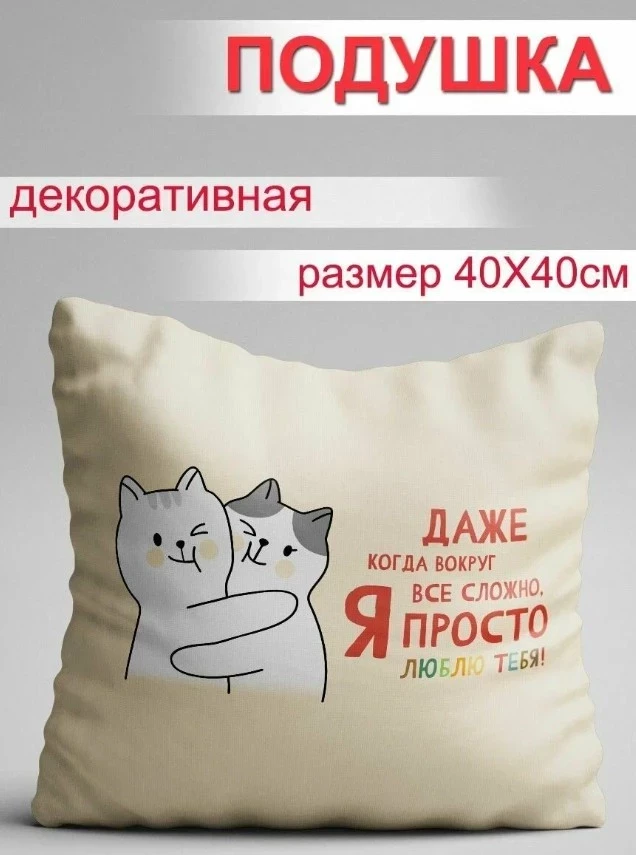 Декоративная подушка Милые котята — уютный аксессуар, который добавит тепла и уюта в любой интерьер. Универсальный размер 40х40 см делает её удобной как для дивана, так и для кровати или кресла. Чехол из мягкого велюра и поплина приятен на ощупь, а рисунок с милыми сердечками добавляет подушке очарования. Наполнитель — синтепух, один из лучших вариантов, если вы задумываетесь, чем лучше набить декоративные подушки. Он мягкий, гипоаллергенный, хорошо держит форму и не сбивается со временем. Подушка станет отличным подарком на любой праздник и станет стильным элементом декора, который привлечёт внимание гостей.