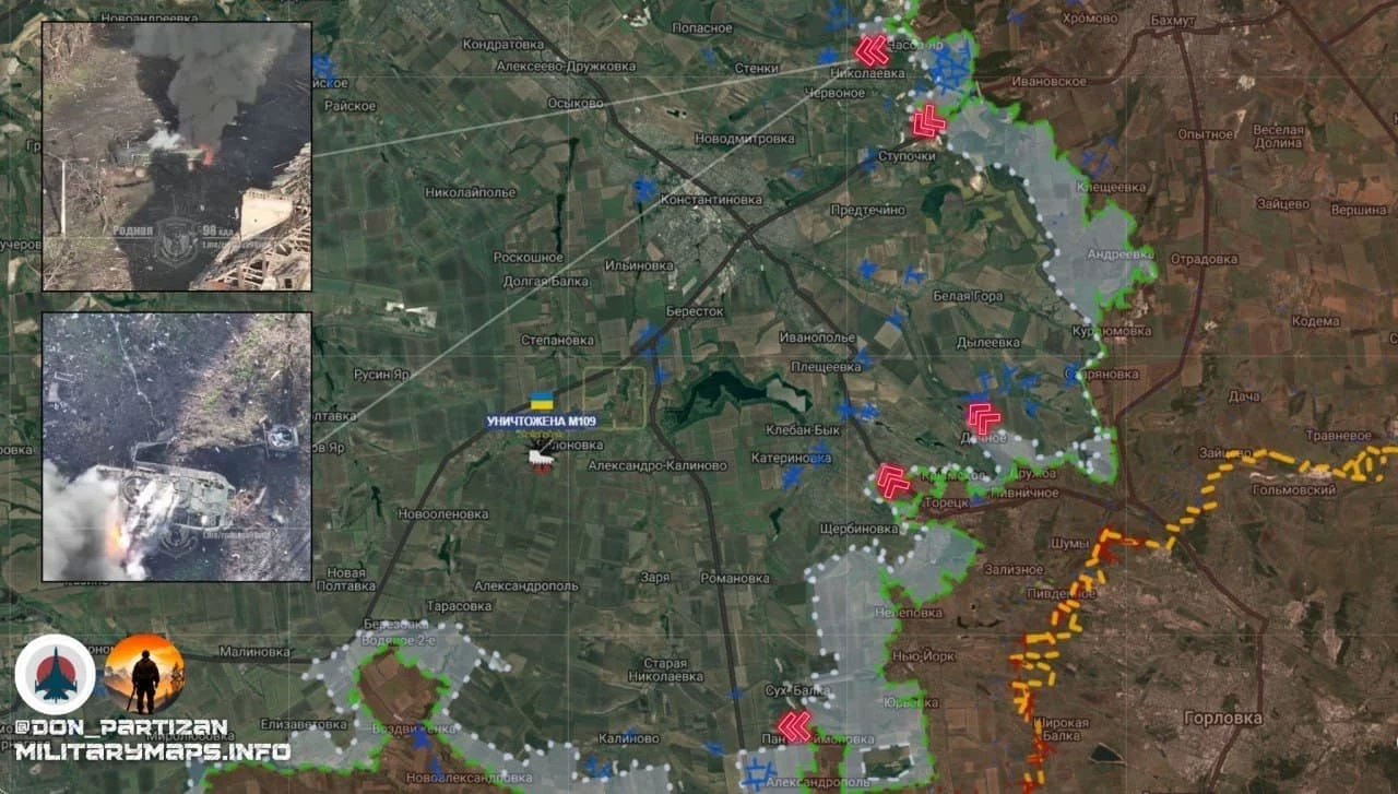 В Торецке продолжается зачистка города. К северу от Крымского есть продвижение наших войск по лесопосадкам. Бои идут на окраинах Щербиновки. В районе Пантелеймоновки ВС РФ продвинулись на 1 км на запад. Со стороны Зеленого Поля наши воины пробиваются навстречу этому движению. В Валентиновке и Сухой Балке – позиционные бои, на земле без изменений.