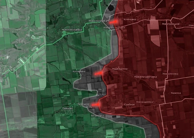 На Угледарском направлении ВС РФ продавливают оборону ВСУ в районе Бурлацкого. Штурмовики заняли лесополосы к северо-востоку от Шевченко и вышли к его окраинам. В районе Весёлого и Фёдоровки наши части ведут бои за опорники врага к западу от этих сёл, чтобы обеспечить фланг для наступления на Комар и Мирное. В районе Разлива тактические успехи, армия России подбирается к окраинам Богатыря.