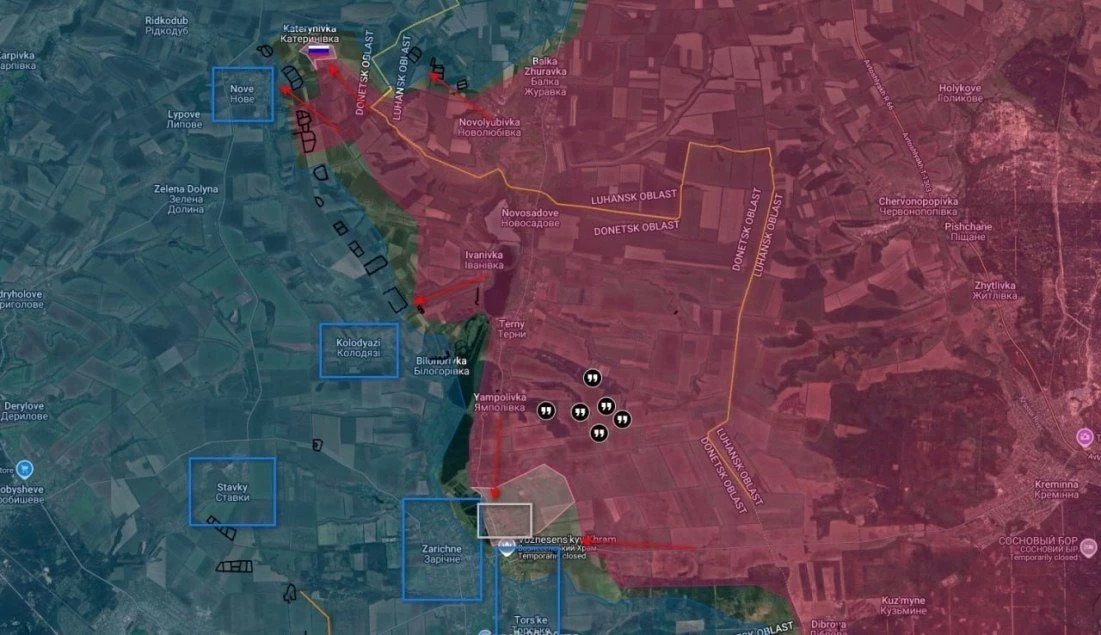 На Краснолиманском направлении ВС России, продвигаясь от Ивановки, заняли Катериновку, о чём заявило Минобороны России.