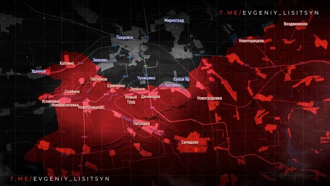 На Покровском (Красноармейском) направлении ВС России атакуют в районе н.п. Котлино, Песчаном и Зверево, идут тяжёлые бои. Отмечается высокая интенсивность боевых действий в Лысовке.