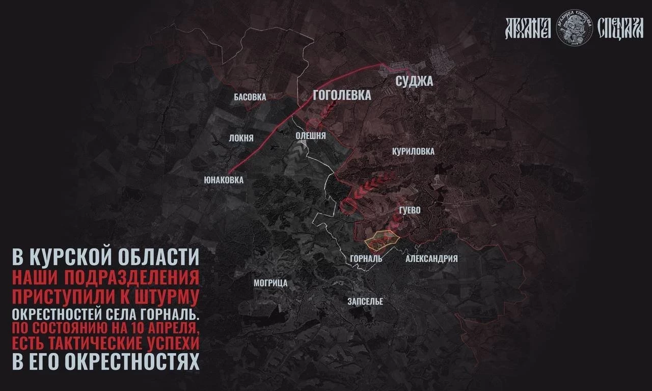 В свою очередь «Северный ветер» пишет, что на Сумском направлении российские войска продолжают освобождение хутора Олешня, села Горналь и Свято-Николаевского Белогорского монастыря.