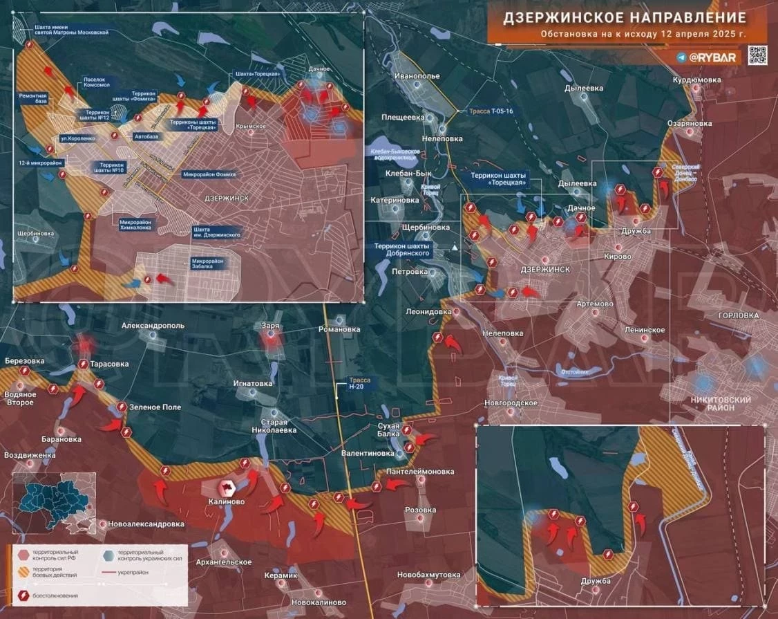 В начале апреля российские войска активизировали наступательные действия на нескольких участках фронта под Дзержинском. Штурмовые группы ВС РФ выбили противника из застройки на северных окраинах города, отбили у ВСУ крупные территории на юго-западе и освободили Калиново.