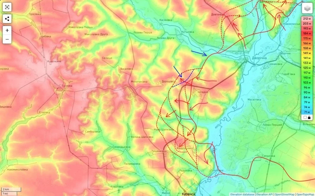 Таким образом уже сейчас командованию ВСУ надо выбирать куда бросать резервы - севернее Купянска (чтобы не дать подойти к северным окраинам города) или восточнее (чтобы сдержать части ВС РФ восточнее города).