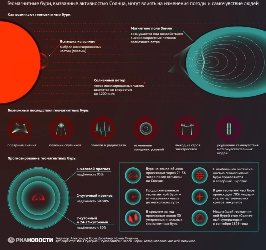Возникновение и последствия геомагнитных бурь (инфографика)