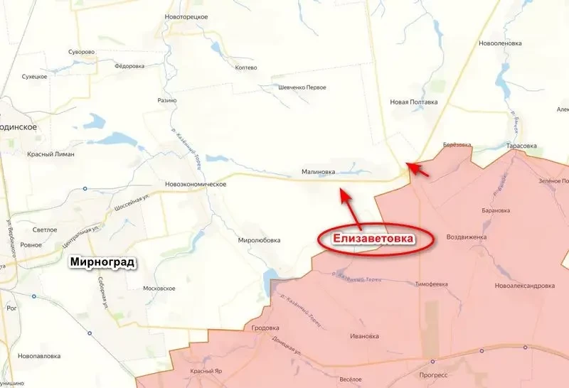 Переход Елизаветовки под контроль открывает нашим войскам выход к трассе Мирноград — Константиновка с юга, а также к Малиновке, чтобы уже окончательно «оседлать» трассу. Наши будут предпринимать обход Покровско-Мирноградской агломерации с востока, если такое решение примет командование российской группировки. Пока же наступление идет в сторону Константиновки.