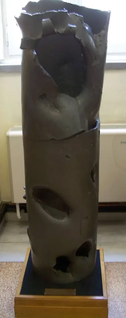 Пробитая турецким снарядом часть шлюп-балки «Георгиоса Аверофа» в музее