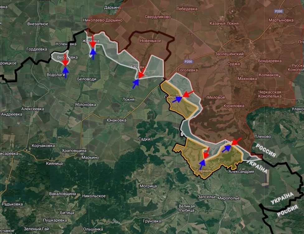 «Курская область. Продолжаются бои в районе населенных пунктов Олешня и Горналь. В последнем ВС РФ имеют очередные тактические успехи. С каждым днем территория, которую еще занимают ВСУ в Курской области, становится все меньше. В Сумской области российские войска, наоборот, продолжают расширять зону своего контроля в районе Локни", - проинформировал Telegram-канал.