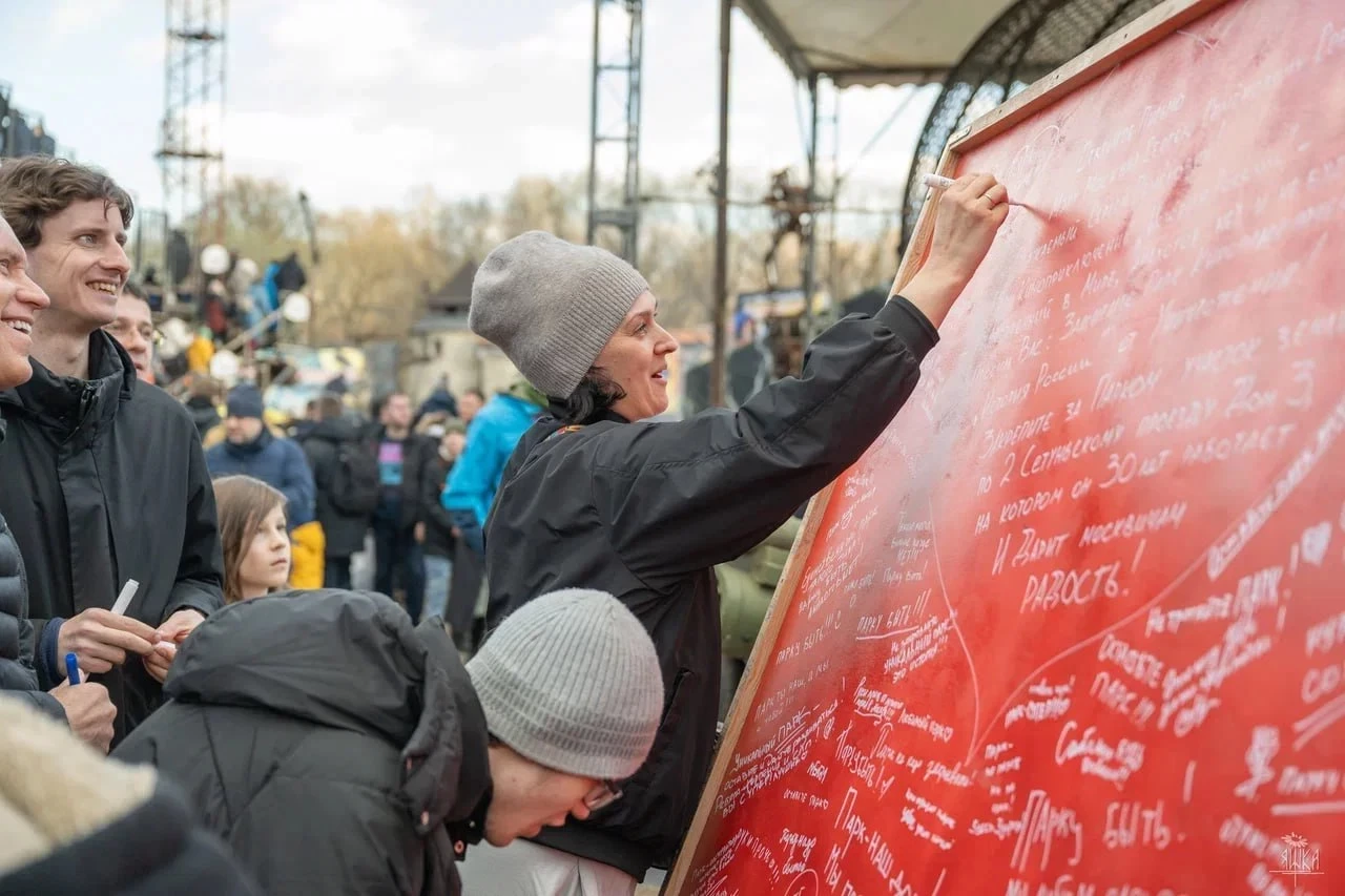 В столичном Парке Киноприключений 13 апреля прошла арт-акция в поддержку этого уникального пространства. Парк КиноПриключений расположен на территории бывшего «Мосфильмовского» района. Основан он был в 1992 году.