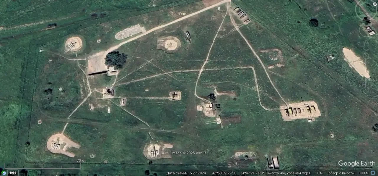 Спутниковый снимок Google Earth: позиция ЗРК С-125М1 восточней Бишкека
