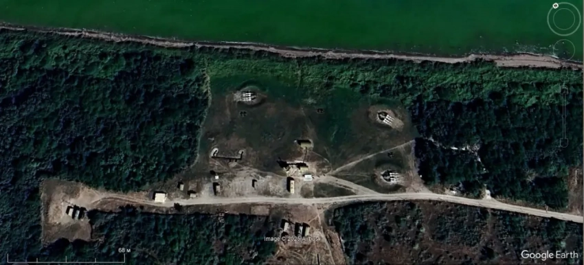 Спутниковый снимок Google Earth: позиция ЗРК С-125М1 на берегу озера Севан